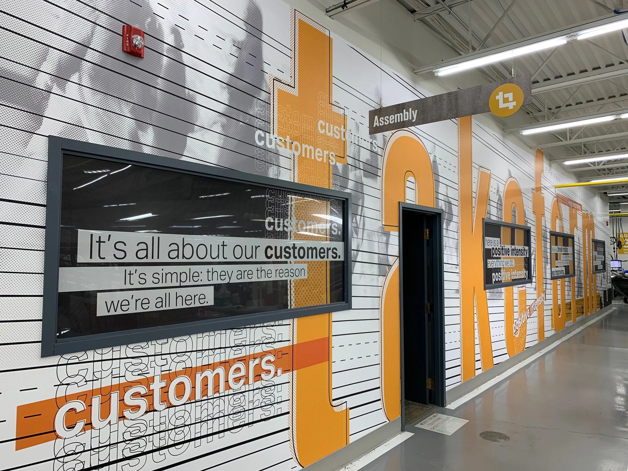 How does a branding firm tell its own story? For Takeform, we treated their physical office as a hero product. By integrating wayfinding, custom wallcoverings, and window films, the design transforms an office and production space into an immersive experience that proves environmental graphics are a narrative rather than just signage.